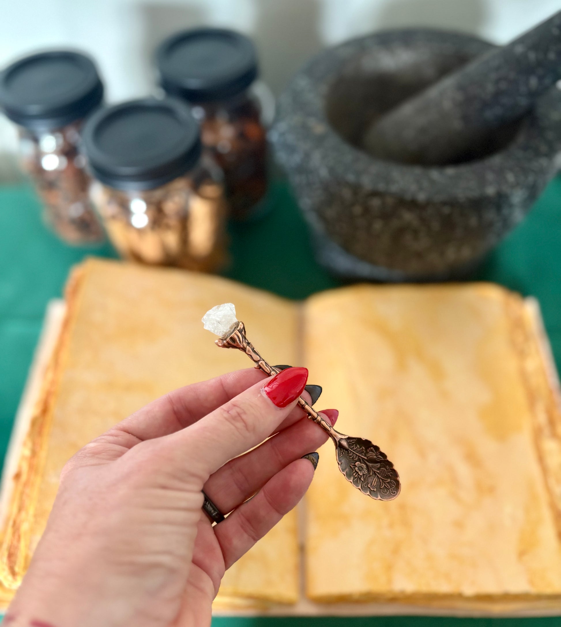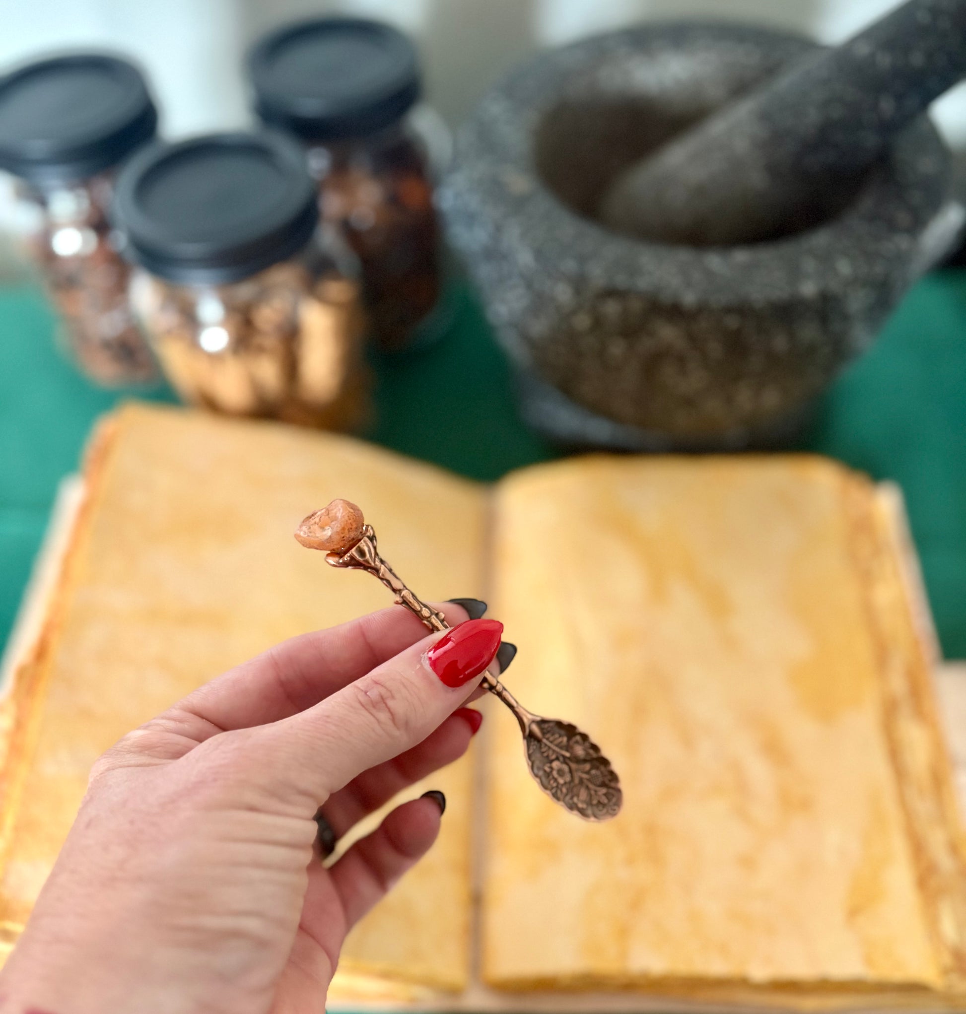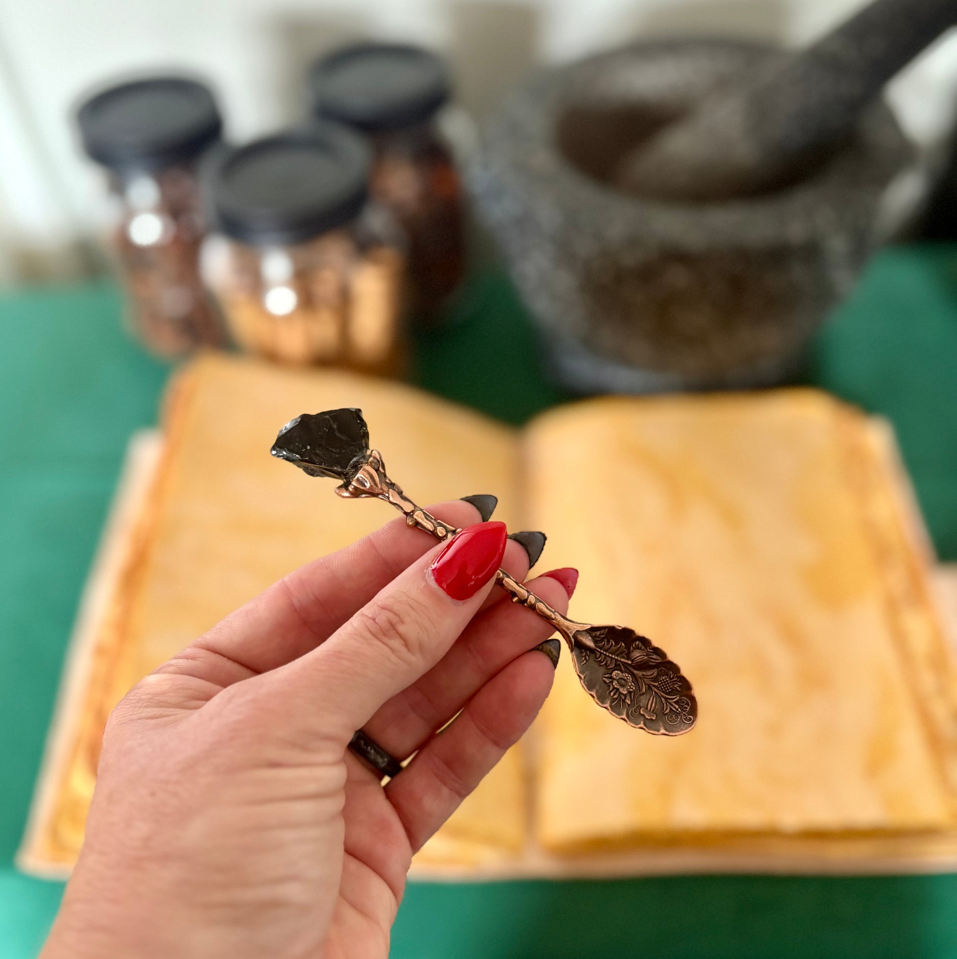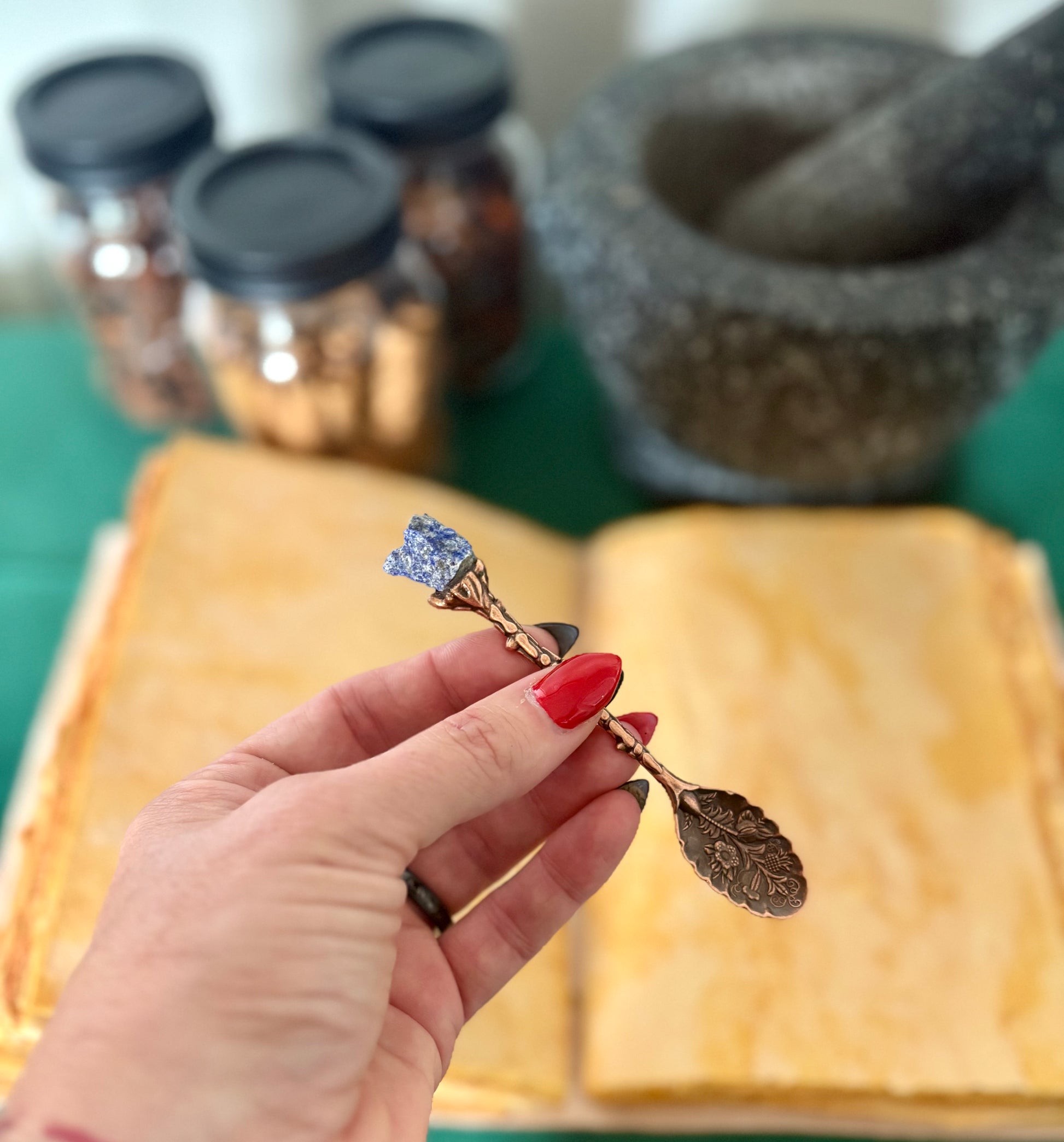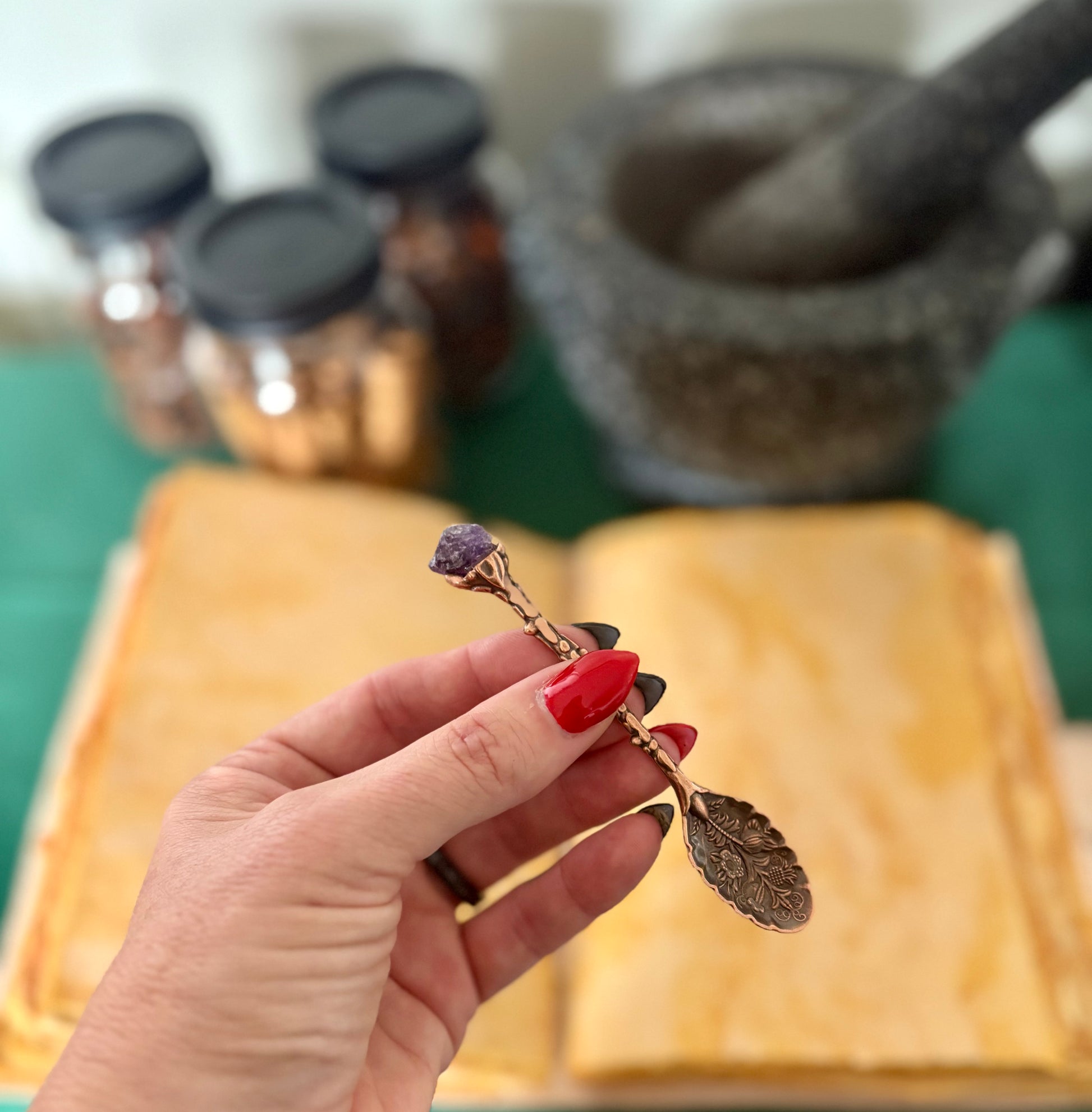 Our bronze & gemstone spoons pair the grounding, protective energy of bronze with the symbolic or Spiritual qualities of the gemstone. Can be used for both practical & metaphysical purposes. Each set contains 7 different gemstones; * Amethyst. * Rose Quartz. * Black Obsidian. * Rock Quartz. * Lapis Lazuli. * Red Agate. * Green Aventurine.