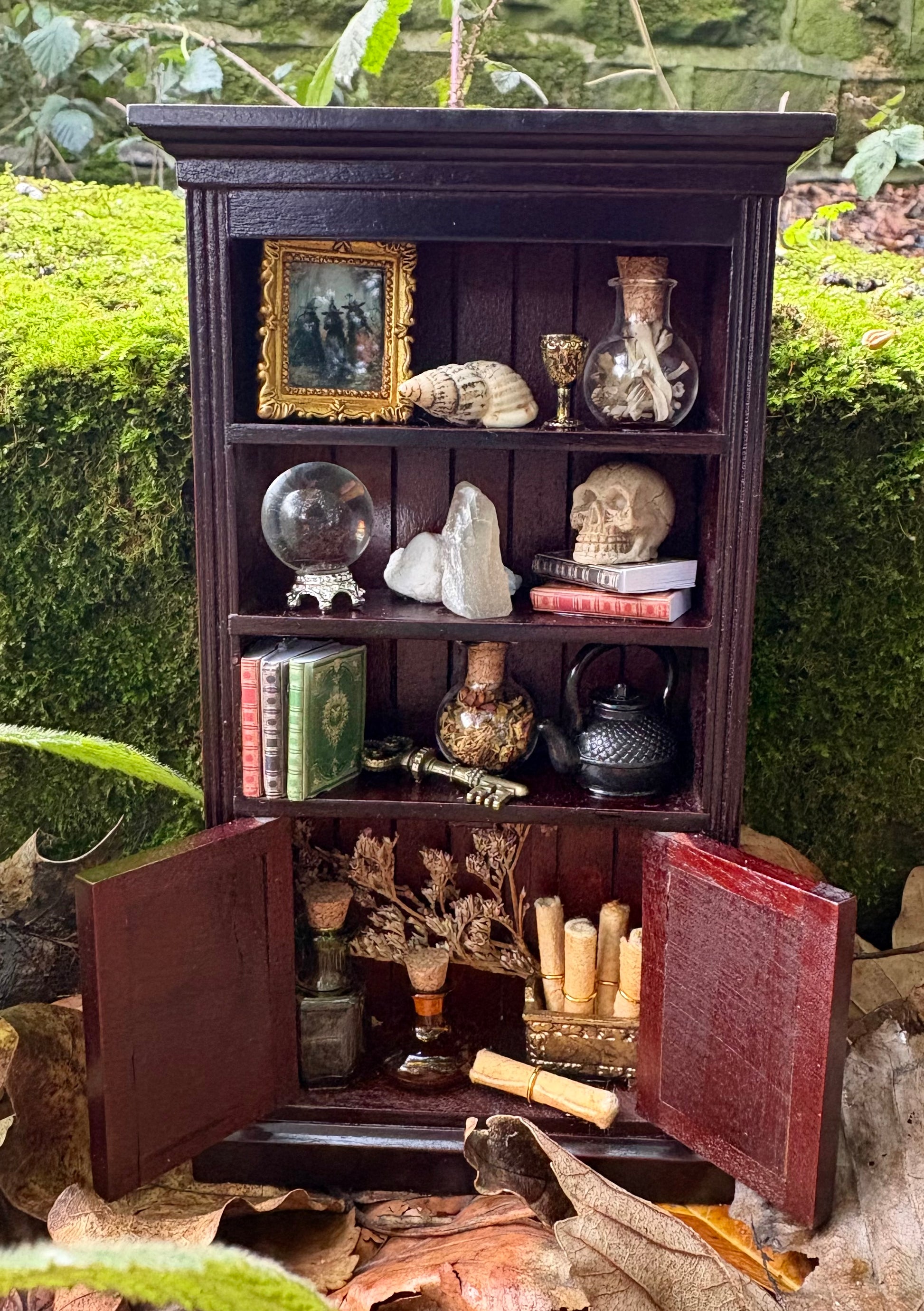 Bring a touch of Magick into your space with our ‘Witchy Wares’ mini curio cabinet. This perfect dark wood cabinet brings Witchy Aesthetic to even the smallest of spaces 🖤