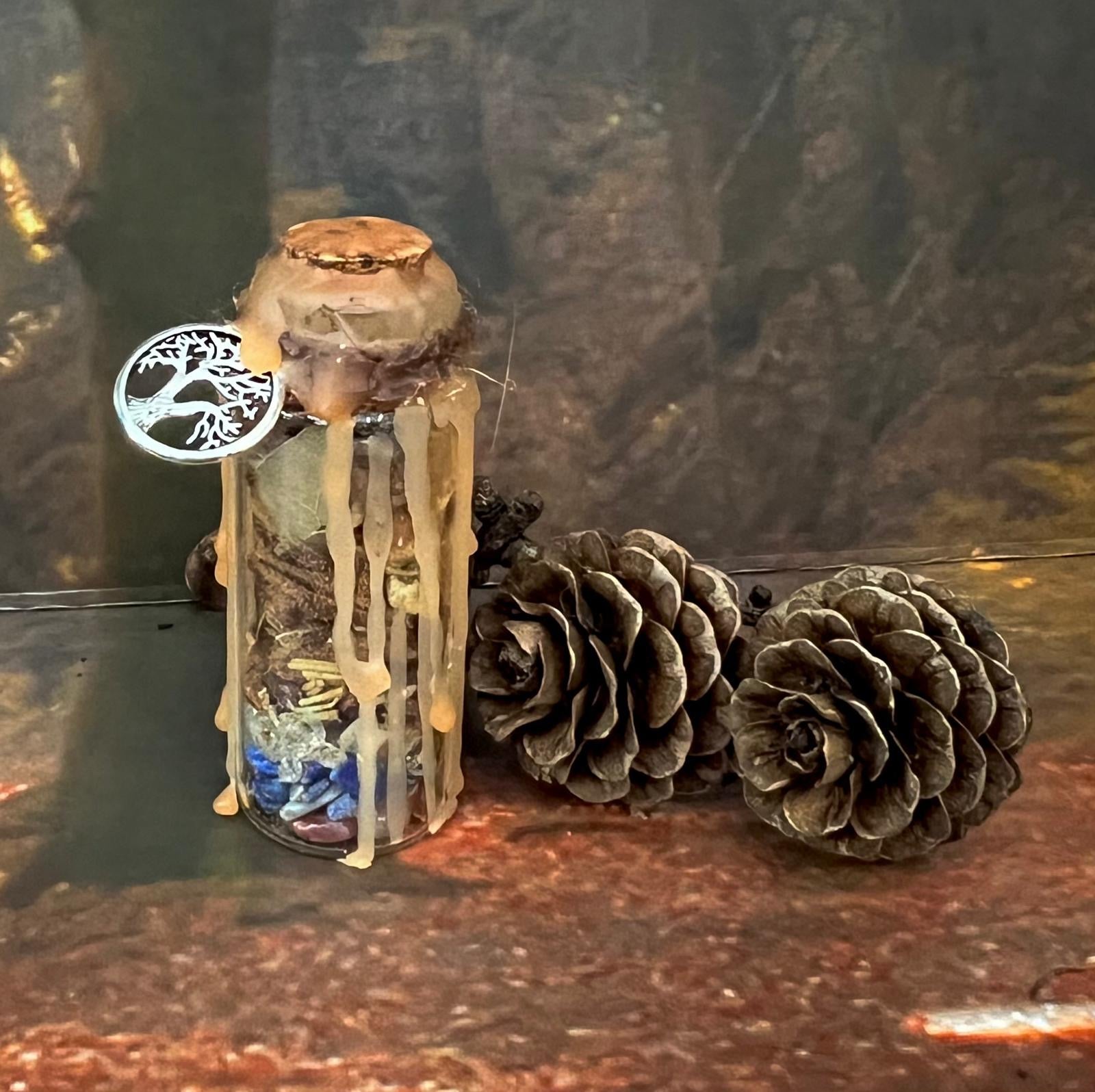 Our spell bottles are hand made & created with love & intention. Includes carefully selected ingredients (crystal chips, herbs/flowers & essential oils), to correspond with this particular Sabbat. The bottle is sealed with corresponding coloured twine & wax & finished off with a Tree of Life charm. Promote/celebrate Mabon by placing your Spell Bottle on your alter, in your home or carry with you & honour the festival & everything it represents.