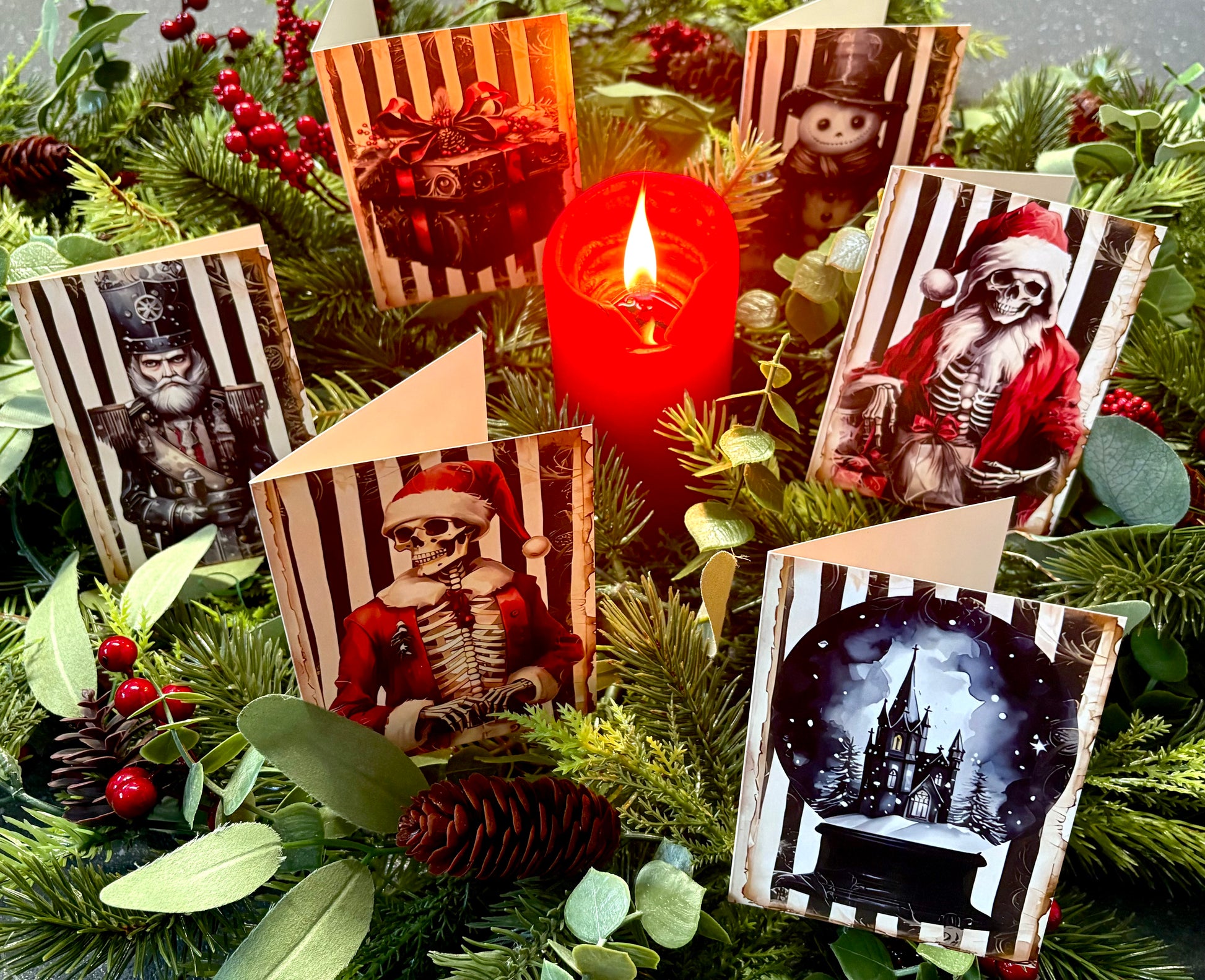 For those who dare to be different; follow tradition but in a spooky fashion with our alternative Christmas cards. Cards are blank inside, envelopes are provided & there are 6 styles in each pack.